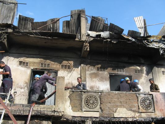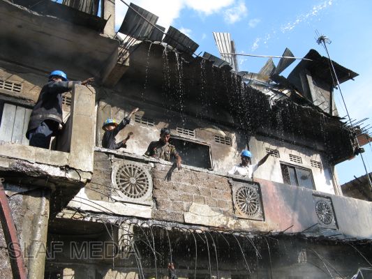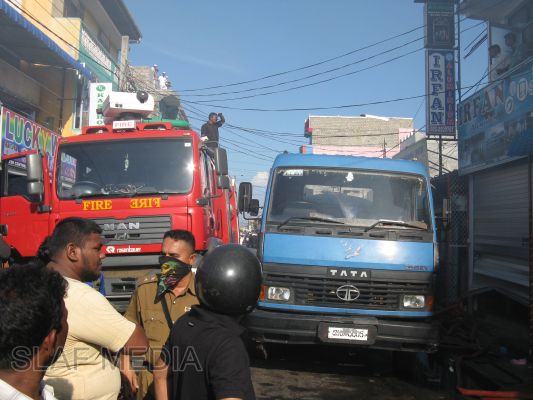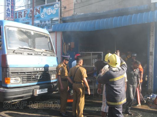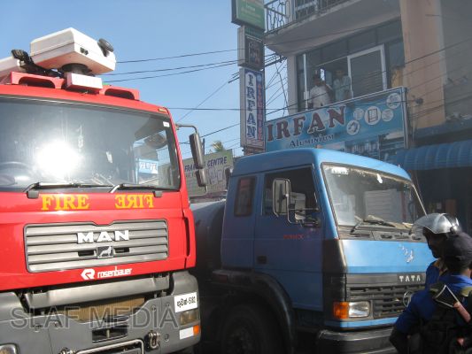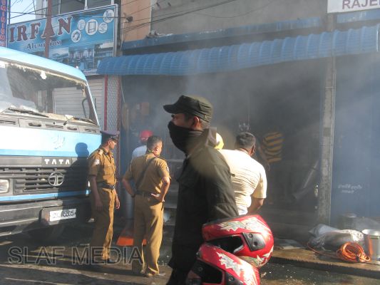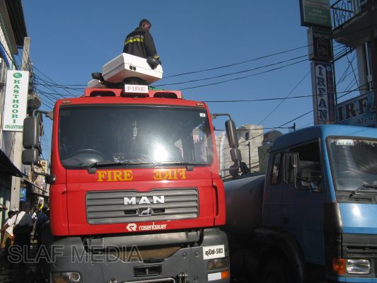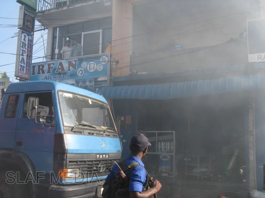 The fire broke out in a Hardware shop in crowded Trincomalee town area during the evening hours of 5th August 2012 and with the assistance of the Sri Lanka Army, Sri Lanka Navy and Police, SLAF Fire Fighters managed to douse the fire with minimum damages to the flamed building.