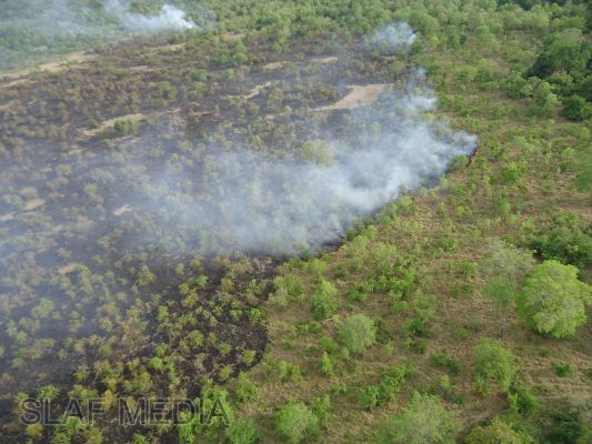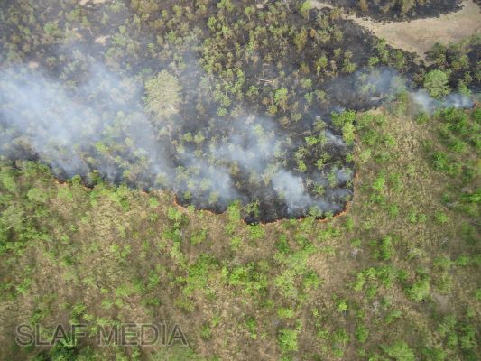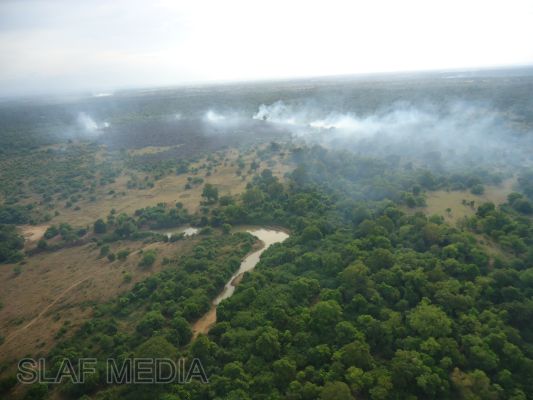 Sri Lanka Air Force, in coordination with the Disaster Management Centre, deployed a Bell 212 Helicopter to assist in fire fighting in the forest area around the Somawathi Chaithya. The Bell 212 completed six Bambi Bucket runs over the fire, dumping nine hundred liters of water on each run.