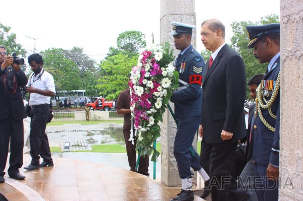 The Deputy Director Ground Operations, Air Commodore MLK Perera, accompanied the President of Seychelles to the war heroes’ memorial. SLAF Officers and other ranks also participated in the ceremony.