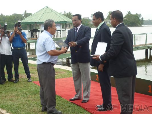 Air Vice Marshal PDJ Kumarasiri, Director Aeronautical Engineering of the Sri Lanka Air Force graced the occasion as the Chief Guest and presented the Trophy for the winners and special mementoes to the two FISA Umpires who officiated the events throughout the day.
