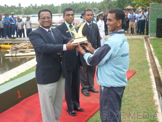 The Defence Services Rowing Championships - 2012 was successfully concluded on the waters of the Bolgoda Lake on 28th August 2012. This year the event was competed amongst all three Armed Forces, with the Sri Lanka Army Rowing team making their debut at the Defence Services Regatta. In addition, the regatta also comprised of four Women’s races which was competed amongst the Sri Lanka Army and the Sri Lanka Navy Rowing teams. Another unique feature of the event was the presence of two Umpires from FISA (World Rowing Federation) to officiate the races together with the local umpires.
