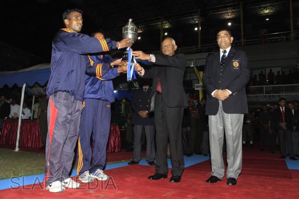 The 7th Defence Services Games 2012 came to an exciting close, in a colourful ceremony last evening at the Sugathadasa Stadium last evening which saw the culmination of months of competitive sports where sportsmen and women of the tri-services pitting their talents against each other in 30 Competitive events and in 13 of the planned 17 Trial events.