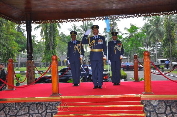 During the inspection, the Commander also declared open the Melamine Project at the General Engineering Wing in this Base. On completing the inspection, the Commander addressed the officers and airmen and praise the commendable job they had done.
