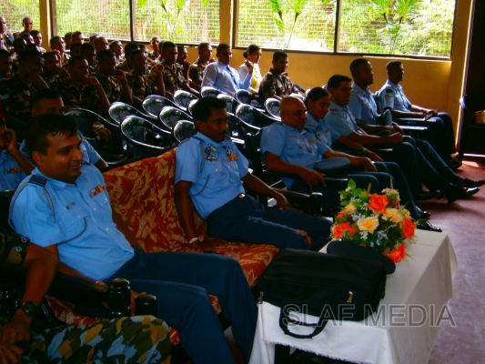 The Comprehensive English Course was conducted from 10 Sep 12 to 18 Sep 12. The success of learning English for a week was showcased on the stage splendidly with variety of events including dramas, songs, and speeches revealing the talents of the trainees. Sqn Ldr JB Pussadeniya, The English Instructor of the Comprehensive English Course provided great encouragement to the trainees during the period of the course.
