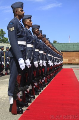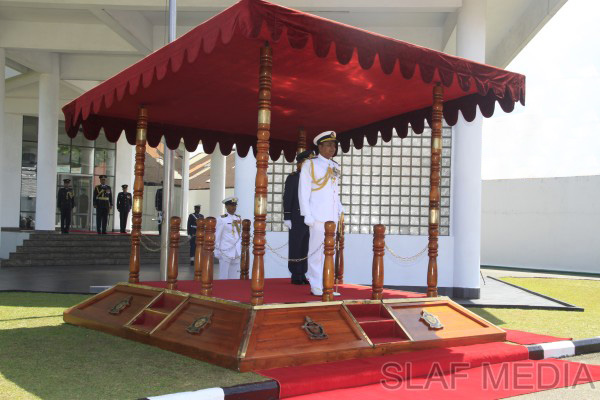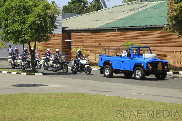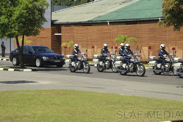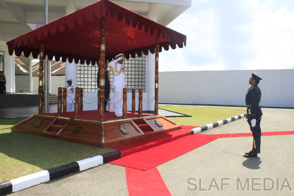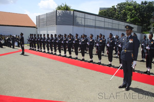 Upon arrival at the Air Force Headquarters premises, he was received by the Commanding Officer of SLAF Station Colombo, Air Commodore Rohintha Fernando, and was accorded a Guard of Honour. Thereafter, he was welcomed by the Commander of the Air Force at the entrance steps of the Headquarters and was conducted into the Commander’s office at the Air Secretariat.