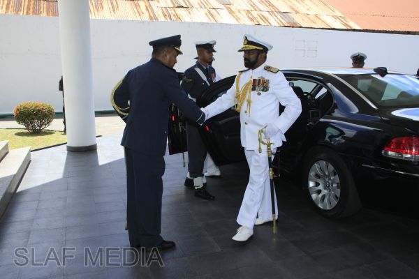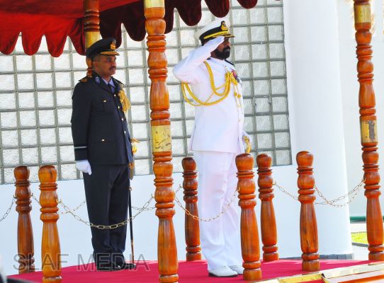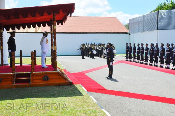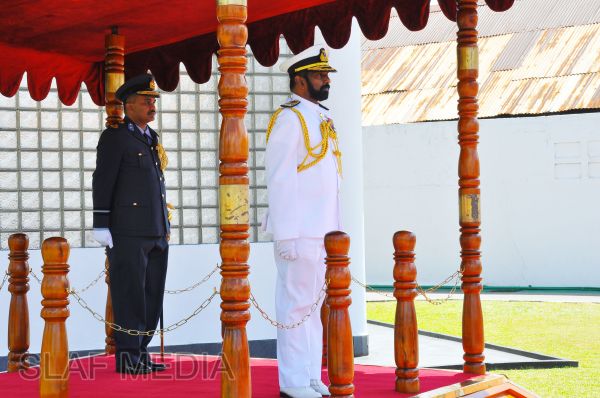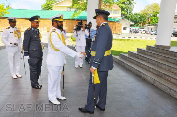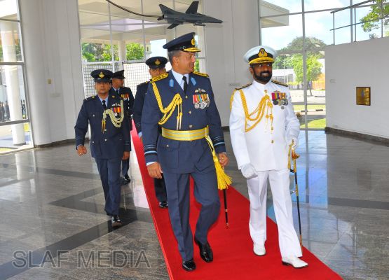 Upon arrival at the Air Force Headquarters, the Navy Chief was accorded a Guard of Honour. Thereafter, he was welcomed by the Commander of the Air Force.The two Commanders then held a brief discussion on matters of mutual interest, especially on areas where greater inter-service coordination is required. The Navy Chief, whilst praising the very healthy relations existing between the two services, expressed that he wishes to further strengthen the relations and work closely with the Air Force for the common good of the country. The Commander of the Air Force, in turn, pledged the fullest support of the Air Force to the new Navy Chief in all spheres of joint action during his tenure ahead.