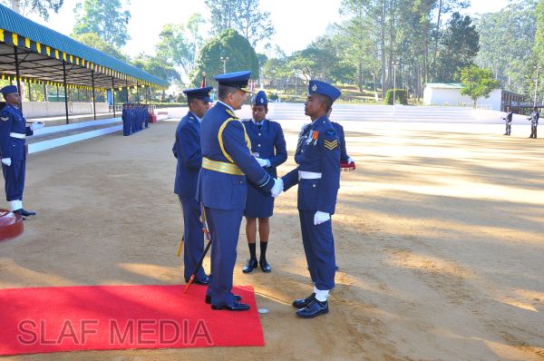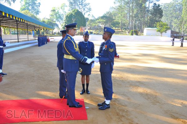 The Commander, upon the arrival for the inspection reviewed the AOC’s parade commanded by the Commanding Officer Group Captain AJ Amarasinghe and Certificate of Commendation was awarded during the parade to 19678 Sgt Janaka GA (Ops Grd Sp I) for the valuable service he rendered to enhance the standards of Drill of SLAF personnel by introducing a Drill Nursery.