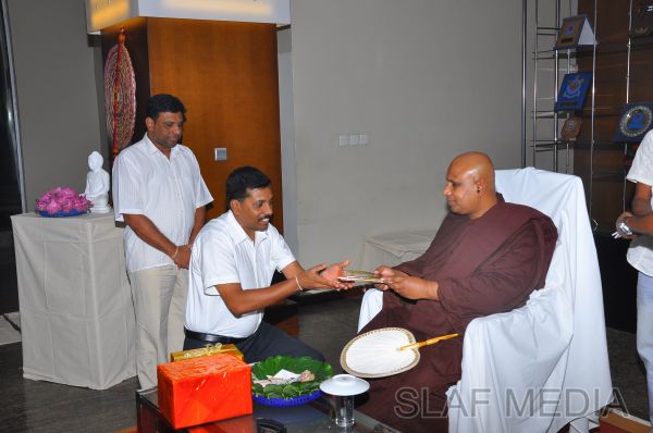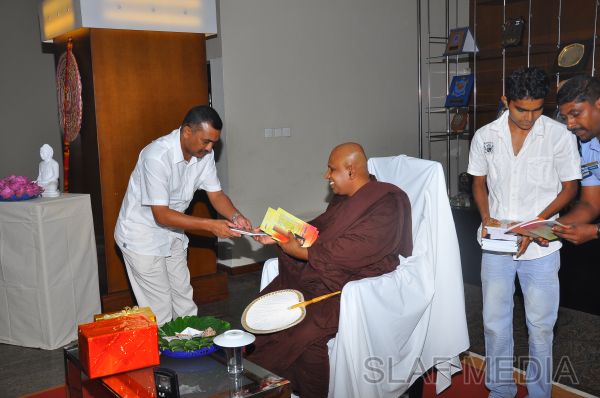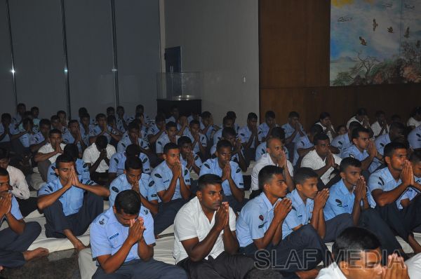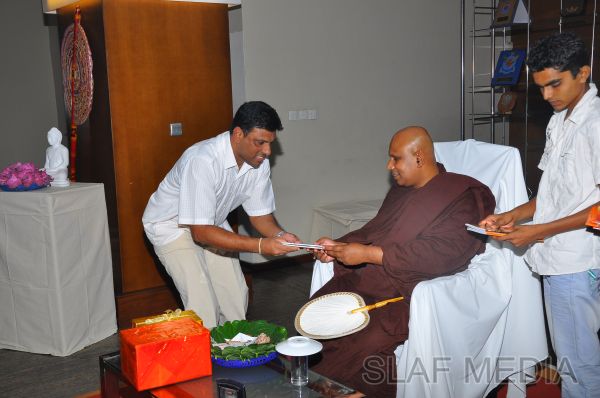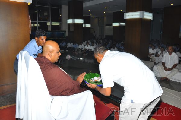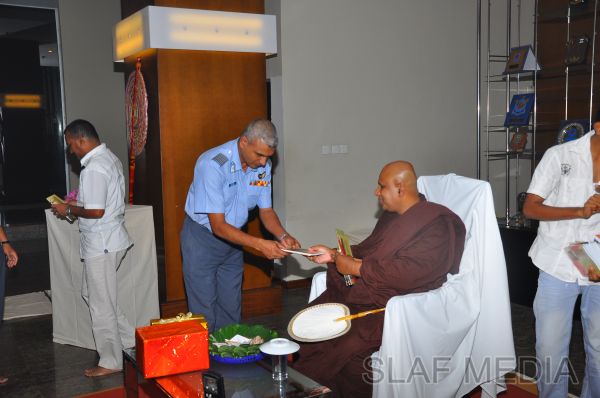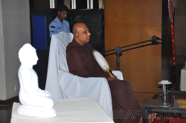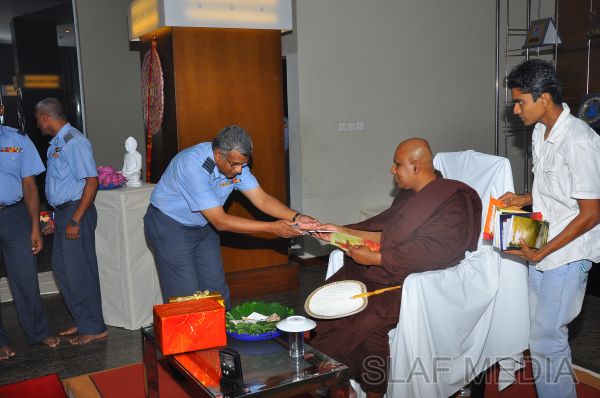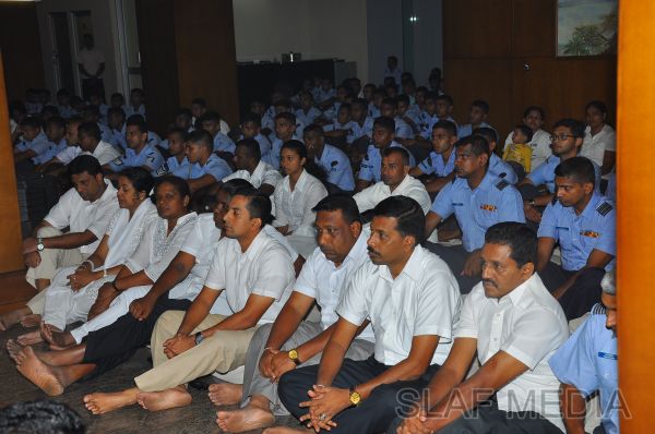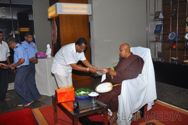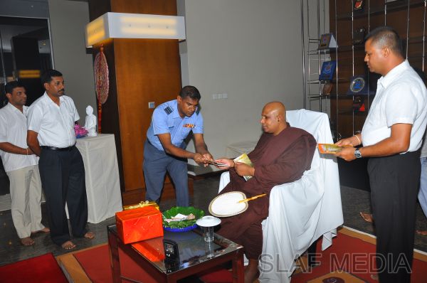 A Dharma Deshana programme presided by Venerable Pitigala Gunarathana thera, Chief Incumbent of the Piliyandala Wawela Shri Sathdharmaloka Dharma Nikethanaya was held at SLAF Headquarters on 10th October 2012. The Commander of the Air Force Air Marshal Harsha Abeywickrama, members from the Air Force Board of Management, senior officers, other ranks and civilians participated the in the programme.