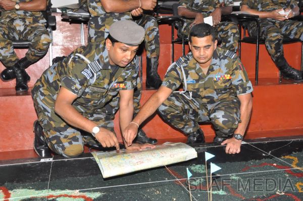 The course comprised of 11 officers and they were exposed to TEWT (Tactical Exercise without Troops), lectures on leadership, operational planning, troop leading procedure and military map marking. The Exercise “Green Rock Apes” designed on a narrative made the officers to conduct a number of verbal operational briefings. The course culminated with a mock dining night on 3 Nov 12.
