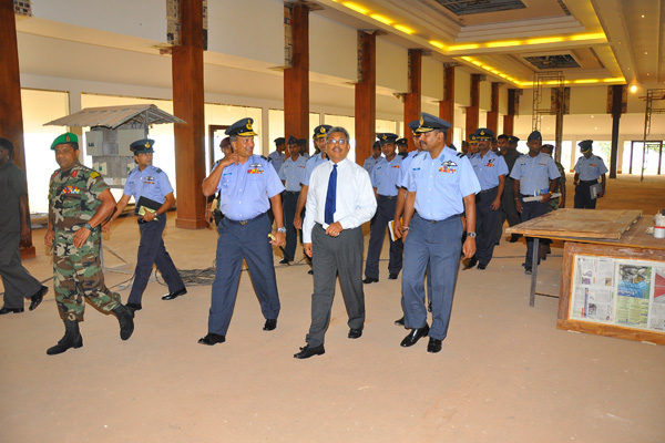 Secretary to the Ministry of Defence and Urban Development Mr. Gotabhaya Rajapaksha and the Commander of the Air Force Air Marshal HD Abeywickrama made a visit to the reception hall that is under constructions at boat yard SLAF Base Katunayake on 03 January 2013.