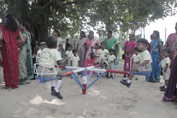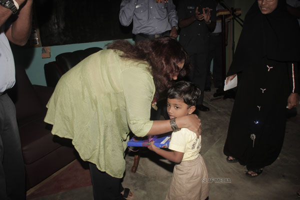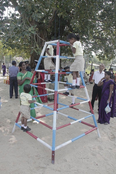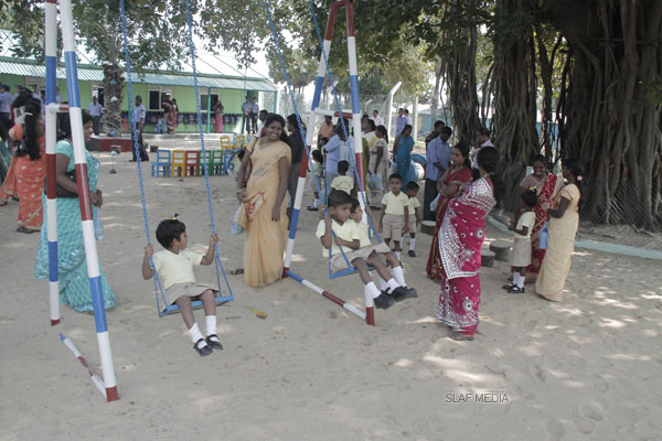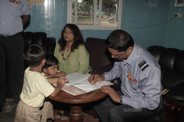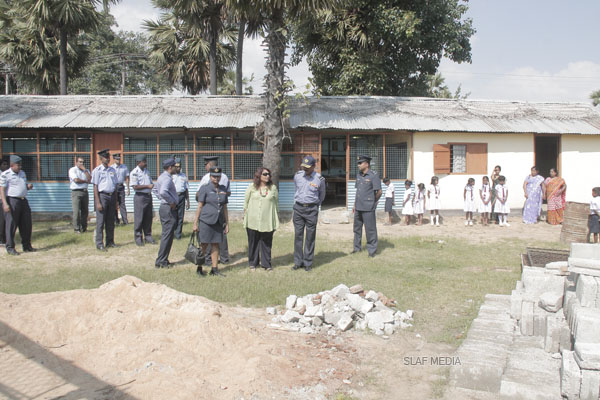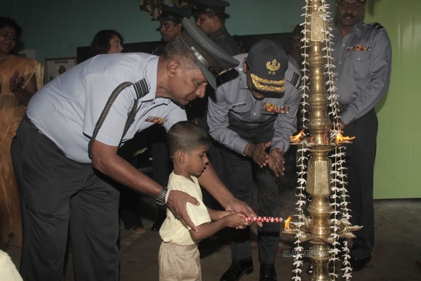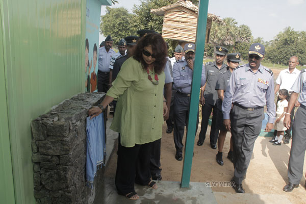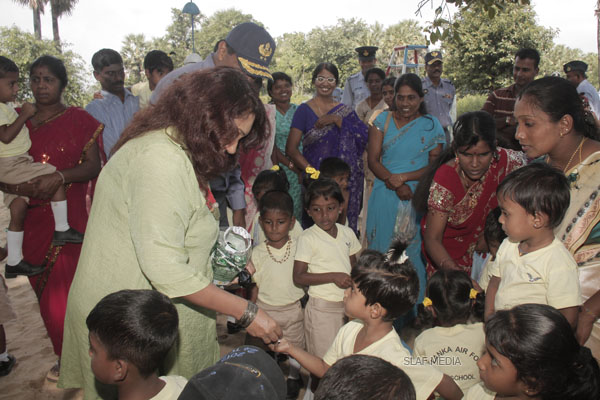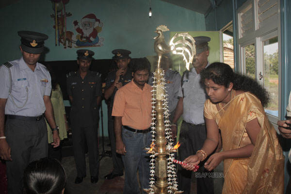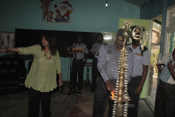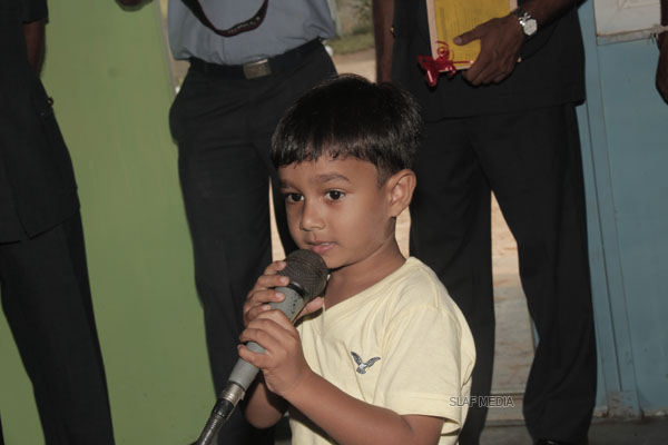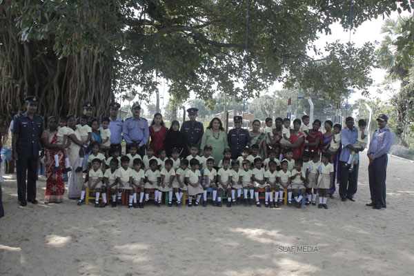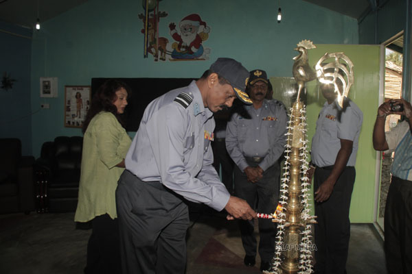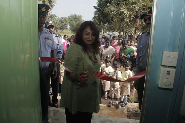 Mrs. Neelika Abeywickrama, the Chairperson of the Seva Vanitha Unit of SLAF, participated in the inauguration ceremony of the first Tamil/ English medium pre-school on 15th January 2013. This is the first of its kind opened in the history of the Sri Lanka Air Force and was initiated by the SLAF Unit Batticaloa. The Director Welfare, Air Vice Marshal WA Silva and Air Commodore MLK Perera were also present at the ceremony. As part of the Nation Building Programe, the Commanding Officer of the SLAF Unit, Wing Commander WMAB Wewegama initiated this community project which was a long unresolved necessity of the area. The enrollment of the first child was done by the Chairperson of the Seva Vanitha Unit Mrs. Neelika Abeywickrama and books and uniforms to the kids of the pre school were also distributed.