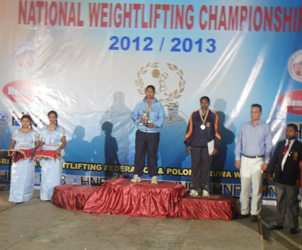 The National Weight Lifting Championship was held on 09th and 10th February 2013 at the Royal College Polonnaruwa. The Air Force lifters won the Women's Category and the men's became Runner – Up at the championship. Airwoman Harishchandra established Sri Lanka records in the snatch, clean and jerk and for the total weight in her weight category.