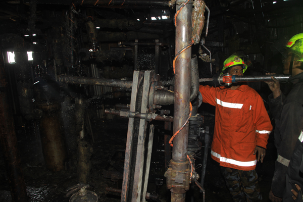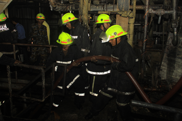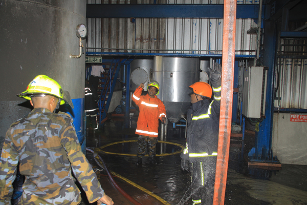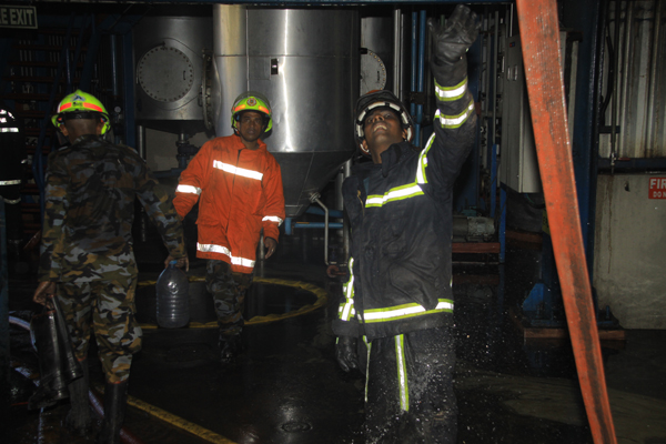 The SLAF Fire Fighters assisted to douse the fire which broke out at the palm oil industry at Kerawalapitiya oil storage area on 5th March 2013. The Fire Brigade, Army and the Navy were also involved in the operation.