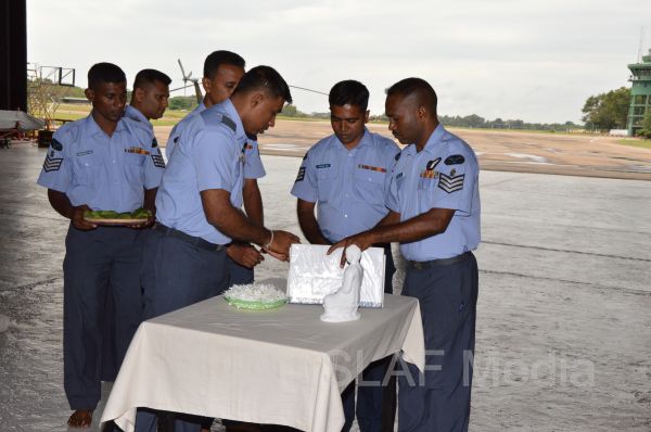 The Formation Day working parade was held at the hangar premises and it was reviewed by Wg Cdr MASK Maheepala, the present Commanding Officer of the squadron. It was followed by blessings bestowed by the sanga and a tea party. The Base Commander of the SLAF Base Anuradhapura Gp Capt HSS Thuyacontha graced the occasion as the Chief Guest.