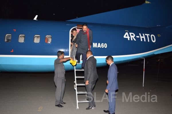 dignitaries arrived at the Rathmalana airport on a MA 60 aircraft of the