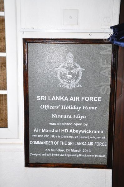 The Commander of the Sri Lanka Air Force Air Marshal HD Abeywickrama declared open the newly constructed holiday home at Nuwara Eliya on 23 March 2013 which was totally designed and built by the Civil Engineering Directorate of the Sri Lanka Air Force. The picturesque view and the lush green surroundings will no doubt attract holiday dwellers to Nuwara Eliya to enjoy the latest facilities available in the holiday home in the cool salubrious climes of ‘Little England’.