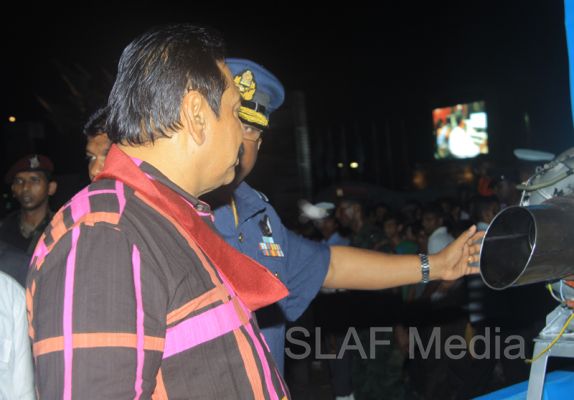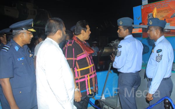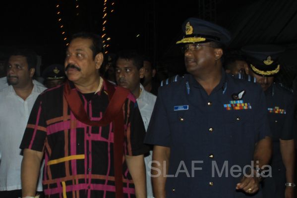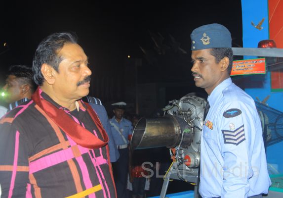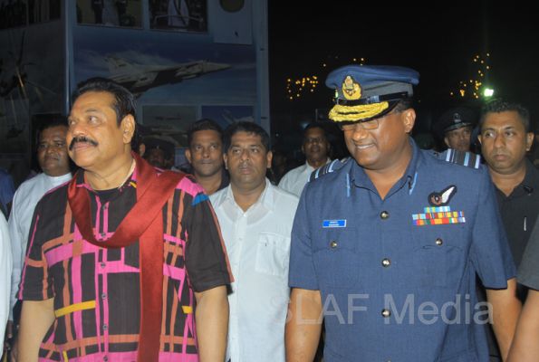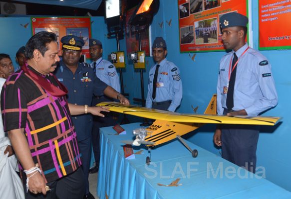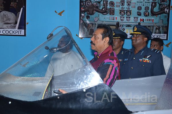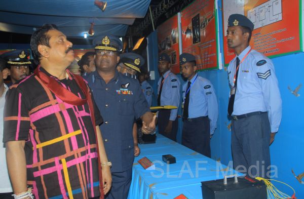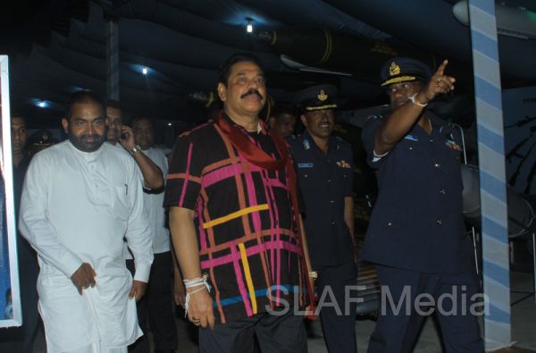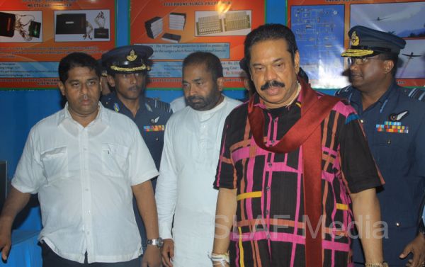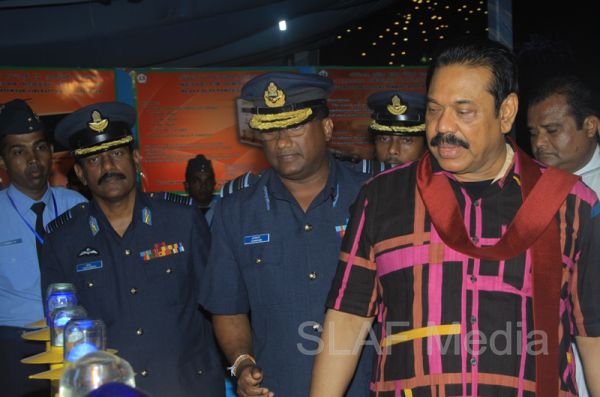 President Mahinda Rajapaksa visited the SLAF site at the Deyata Kirula 2013 exhibition on evening 24 March 2013. The Director Aeronautical Engineering Air Vice Marshal PDJ Kumarasiri received the President on behalf of the Commander of the Air Force Air Marshal HD Abeywickrama and His Excellency was taken around the exhibition stalls of the SLAF. The CRDO Air Cdre TGJ Amarasena, Commanding Officer of SLAF Station Ampara Gp Capt KDN Kodituwakku and Gp Capt AH Wijesiri were also present during the site tour.