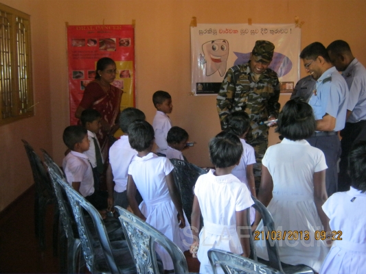 A team comprising of 07 Dental Doctors and 26 Dental Assistants participated in this programme which provided both preventive and curative dental care for all service personnel at SLAF Vanni and Mullaittivu. A Mobile Dental Clinic was also conducted at “Mudukulama Prajashalawa” at Vanni for school children of the area.