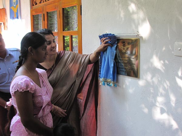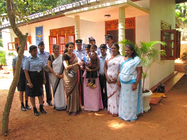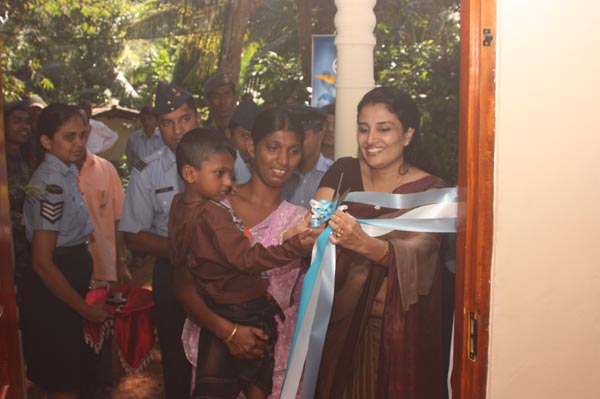 Sri Lanka Air Force Seva Vanitha Unit(SLAF SVU) donated a newly built house worth Rupees one million under the Anula Fernando housing project to Mrs. Jinadari and her son Minsara on last morning (17 November 2009) in Athgala, Gampola. Mrs. Jinadari is the wife of war hero Corporal Sampath Kumara who died in a Claymore attack in Morawewa on 09 January 2009. Little Minsara is also a beneficiary of the Marion Goonetileke Scholarship fund sponsored by the SLAF SVU.