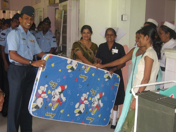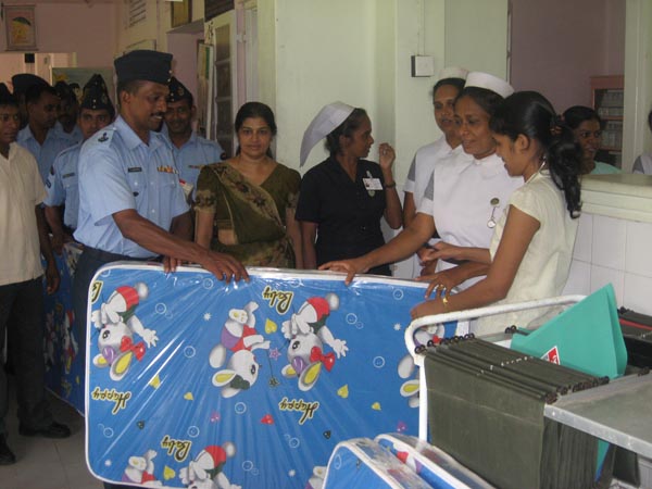 The Wing recently celebrated its sixth Formation Day in a befitting manner, with the unanimous concurrence of its Commanding Officer and other ranks. A run down ward in the Negombo Base Hospital was earmarked by the Wing to be repaired and refurbished. Afterwards the ward was given a complete face lift by the collective efforts of the Wing. The Children’s Ward was concurrently restored. Seven unusable beds were mended and new mattresses supplied. These were presented to the hospital along with a stock of bed sheets and a blood pressure monitor by Commanding Officer, Wing Commander Rasika Bellanage to Directress, Negombo Base Hospital, Dr.Champa Aluthweera.