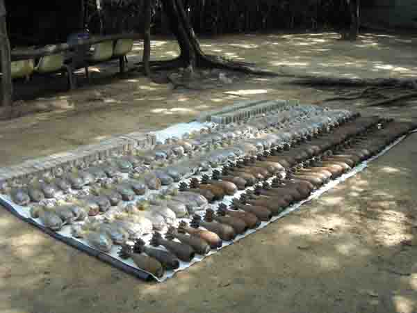 The Air Force Ground Element based at the Special Operations Group Trinncomalee, commanded by Wing Commander Indika Weerarathna, conducting a clearance operation recently in the general area of 'Kandalkadu’ recovered over 152, 82mm Mortar Bombs, 171Charges and 152 Fuses, hidden by the LTTE for use in future attacks.