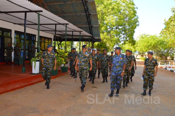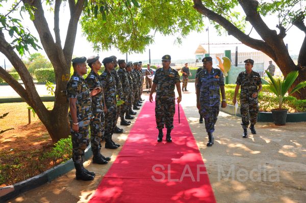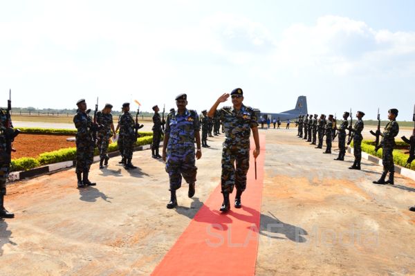 The Commander of the Air Force Air Marshal HD Abeywickrama conducted the Annual AOC’s inspection of SLAF Station Palaly on 22 April 2013. The Commander, upon the arrival for the inspection, was received by the Commanding Officer SLAF Station Palaly Gp Capt AJ Amarasinghe and was afforded a street lining which was commanded by Fg Off GP Amarasiri.