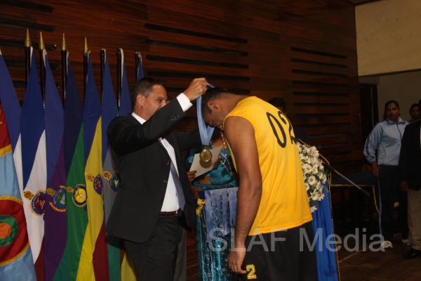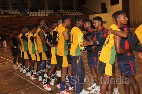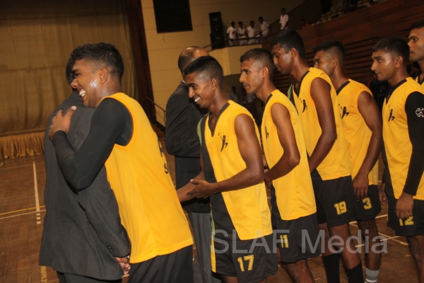 Head Coach of the SLAF Handball team Mr. Daniel Cochard graced the finals as the Chief Guest. Chairman SLAF Handball Group Captain JA Nanayakkara , Deputy Chairman SL Army Handball Colonel R Gunasekara and Chairman SL Navy Handball Commander D Pathberiya were also present at the final.