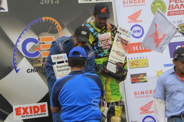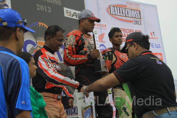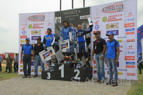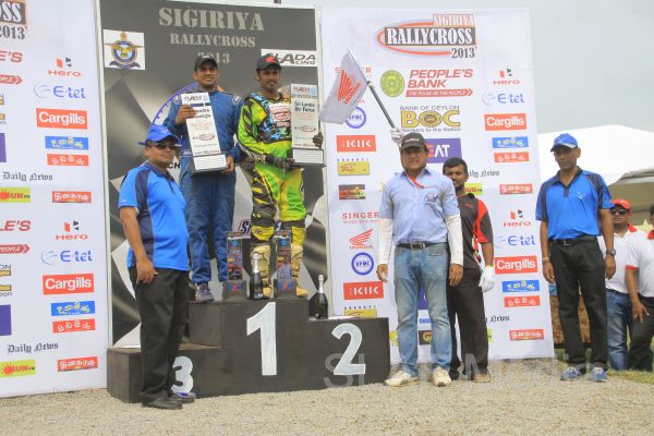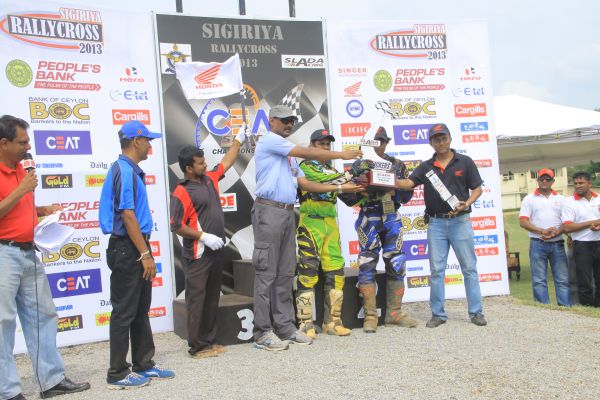 Gayan Sandaruwan was the Best Rider whilst Ashan Silva was awarded the trophy for the Best Driver at the Sigiriya Rally Cross 2013. The sponsors of the event were also awarded with mementoes by the Chairman SLAF Motor Racing Air Cdre JSI Wijemanne.