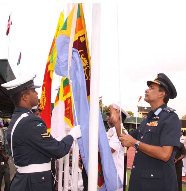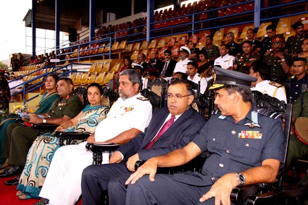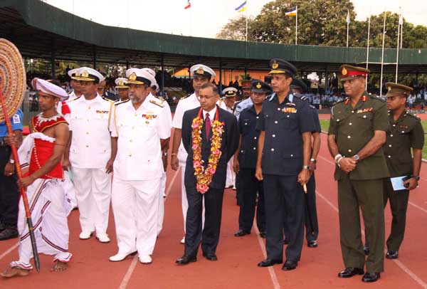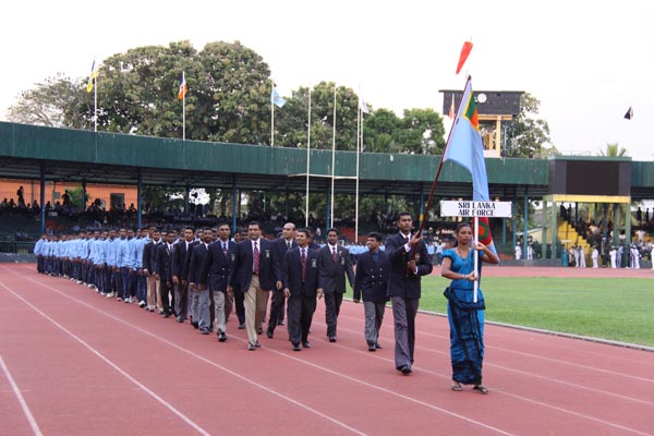 The sportsmen and women of the Army Navy and Air Force compete for supremacy in twenty nine sporting disciplines, and the event is held annually. This year the event is hosted by the Sri Lanka Navy. The Chief of Defence Staff and Commander of the Air Force Air Chief Marshal Roshan Goonatilleke, the Commander of the Army Lieutenant General Jagath Jayasuriya and the host Vice Admiral Thisara Samarasinghe the Commander of the Navy graced the occasion. The games opening included a sky diving display by the tri services paratroopers, a band display and a march past of the sportsman and women of the respective sporting disciplines representing the three services.