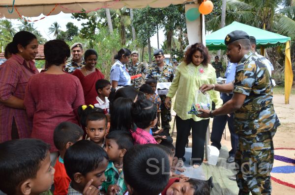 Heralding a new era in the now peaceful terrain of Mullaittivu, the Sri Lanka Air Force Seva Vanitha Unit conducted a community project at “Udaya Sooriyan” Pre – School Mullaittivu last morning, 20th May 2013, with a view to assist children of an underprivileged school in the vicinity of SLAF Station Mullaittivu.