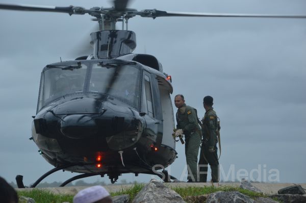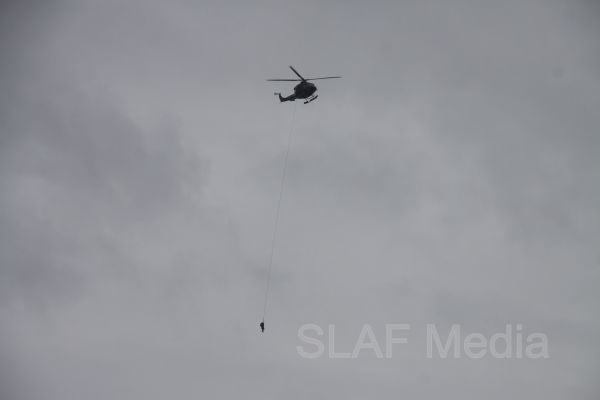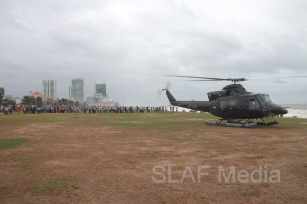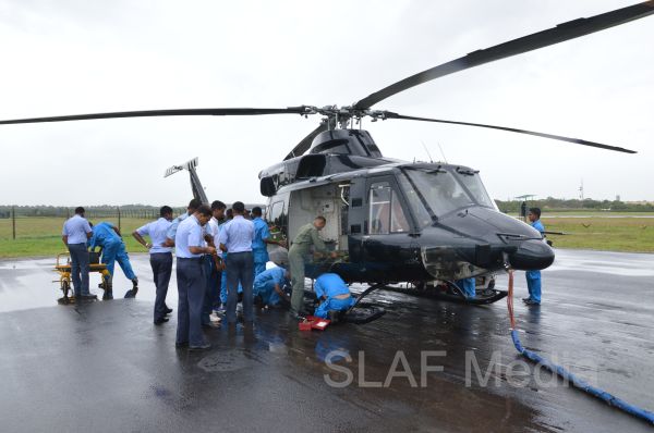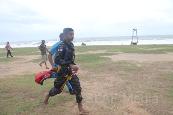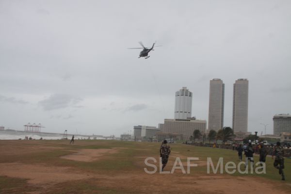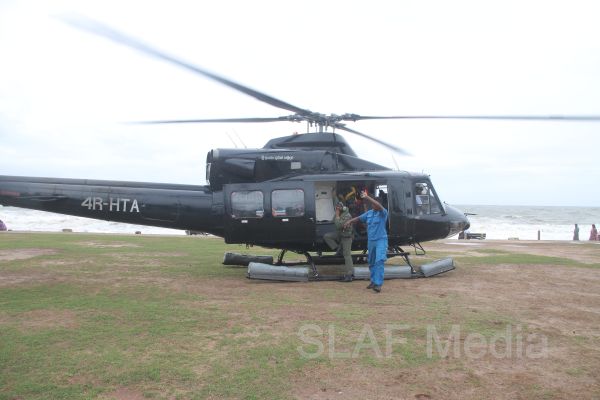 The Bell 412 deployed along the coast from Ratmalana to Kollupitiya rescued two fishermen in two separate missions during the morning hours, landing at the Galle Face Green to transfer the recued fishermen.