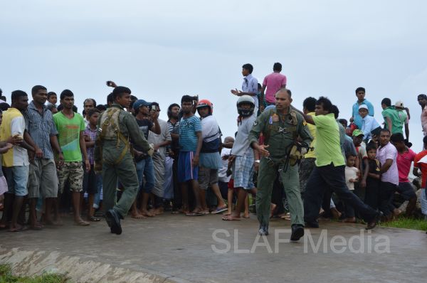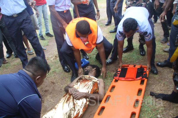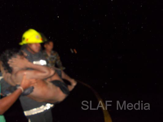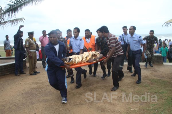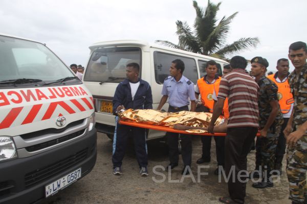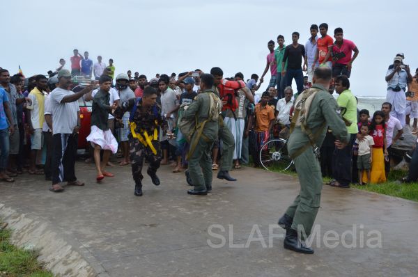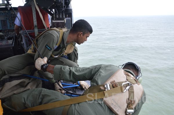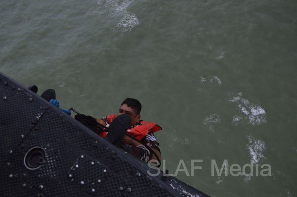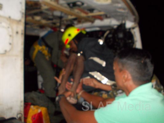 Through out the late morning and afternoon the SLAF flew search missions and though bouts of bad weather restricted missions at times the SLAF deployed another Bell 412 once again at night (at around 1900 hrs) and rescued NK Ananda, a fisherman from Balapitiya who was found clinging to a bouy off the coast of Induruwa. He was airlifted to SLAF Katukurunda and later transferred to the Nagoda hospital.