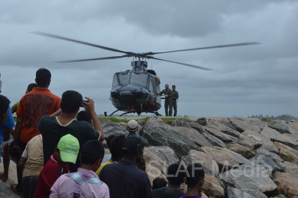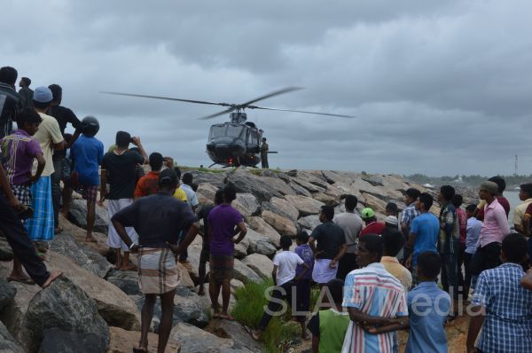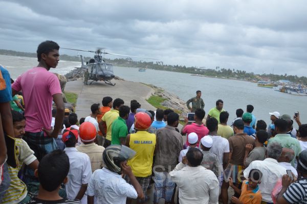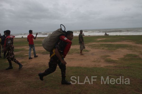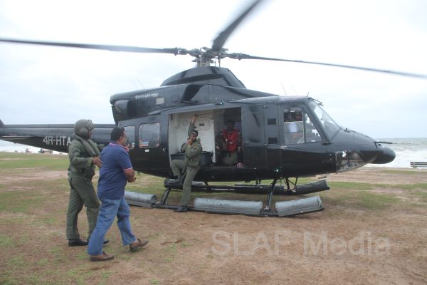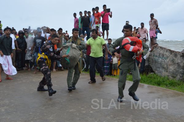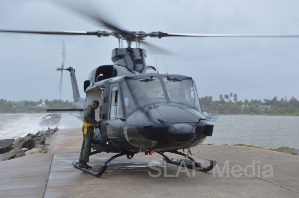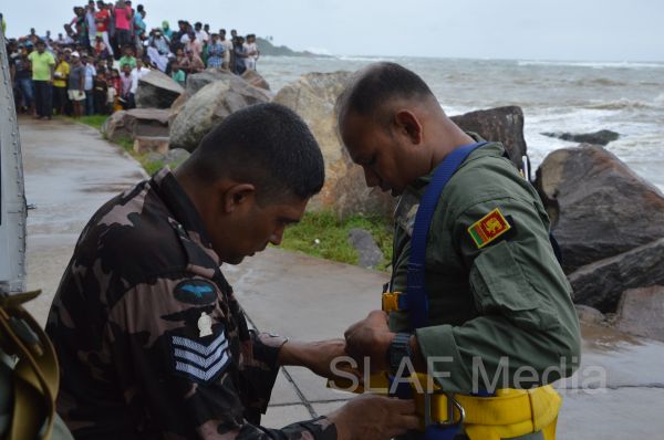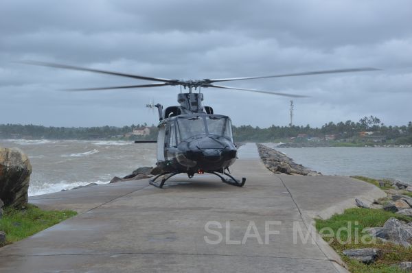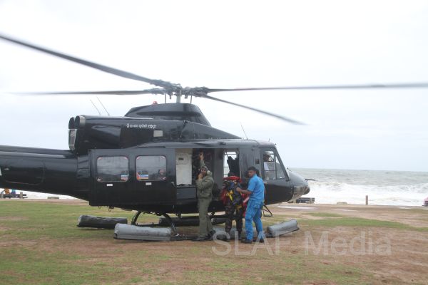 In support of operations being carried out to rescue fishermen from the sea after their boats capsized due to the gale force winds experienced this morning, the Sri Lanka Air Force deployed a Y12 aircraft to search the coastal belt from Ratmalana to Balapitiya, one Bell 412 helicopter on a search and rescue mission along the coastal stretch from Ratmalana to Kollupitiya and one Bell 412 helicopter on a search and rescue mission to search for a boat with five persons on board in the vicinity of Beruwala.