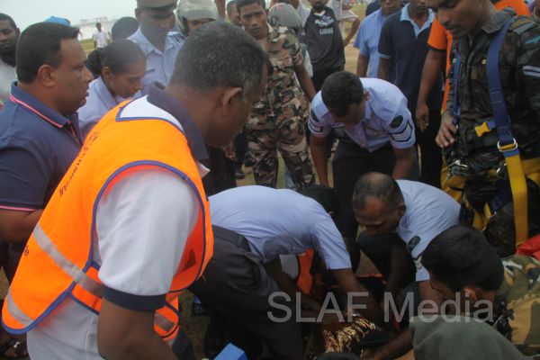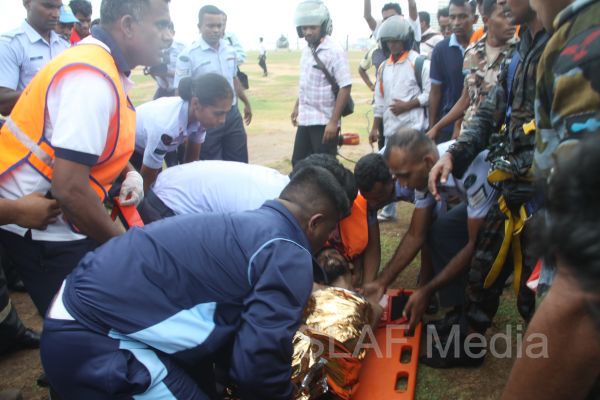 The second Bell 412 deployed in Beruwela was able to locate the missing boat and rescued one fisherman from the boat which had capsized. This person who was classified as a P-1 casualty was airlifted to Nagoda hospital. The chopper was able to direct a fishing vessel in the vicinity to rescue two of the other fishermen while two others were dragged to the shore by people in the vicinity with the help of ropes.