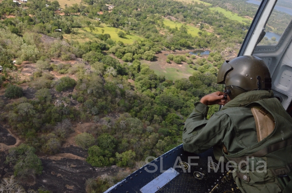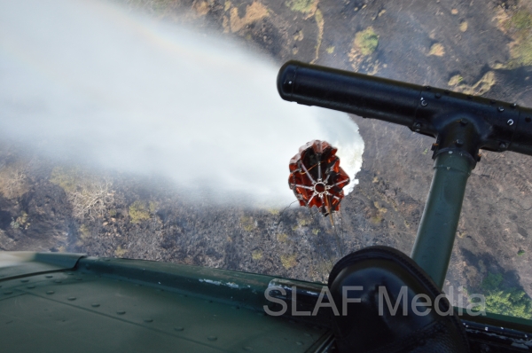In support of fire fighting operations carried out to assist in retarding the spread of a major forest fire which erupted in Mihintale, the SLAF, No. 7 helicopter Squadron stationed at SLAF Base Hingurakgoda deployed Bell 212 helicopter equipped with Bambi bucket at approximately 1500 hrs on 20th June 2013.