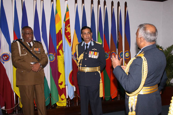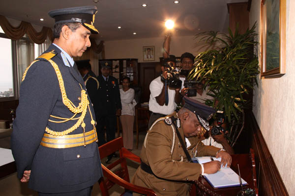 On his arrival, he was received by the Commanding Officer of SLAF Colombo Group Captain Nishantha Dharmadasa. And thereafter he was accorded with a Guard of Honour that was conferred by the Colour Squadron of SLAF which was commanded by Flight Lieutenant Hirantha Herath. Then he went on to pay a courtesy call on the Commander of the Air Force Air Chief Marshal Roshan Goonetileke, at his office.
