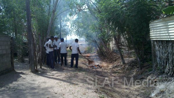 All susceptible areas, where mosquitoes could breed were cleaned to prevent breeding.This campaign was conducted with the contribution of service personnel of SLAF Unit Batticaloa.The program was actively supported by the Municipal Council, Public Health Inspector and residents in the area.