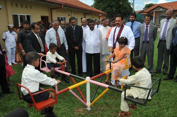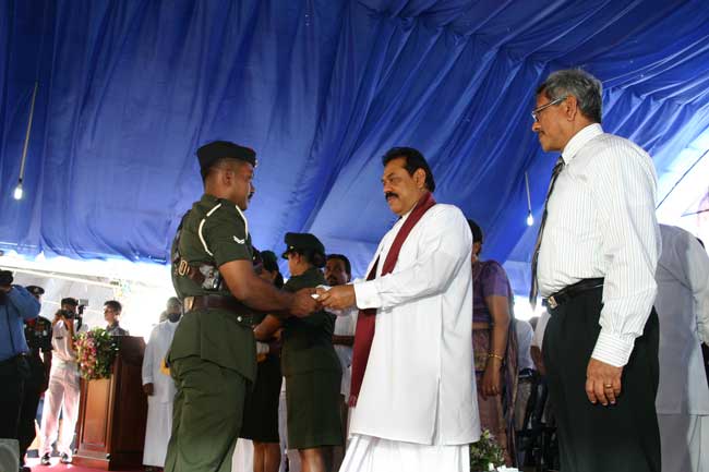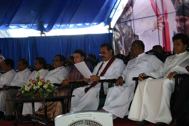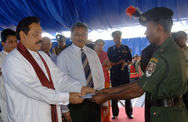 His Excellency Mahinda Rajapksa, President of Sri Lanka and the Commander in Chief of the Armed Forces today handed over Ranajayapura mega housing scheme to the war heroes. At a ceremony held at Ipalogma, the President handed over keys of 100 houses to their owners.
