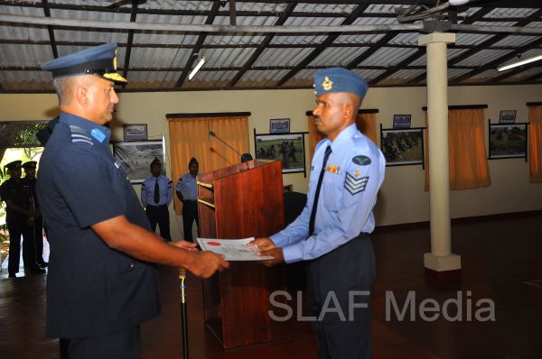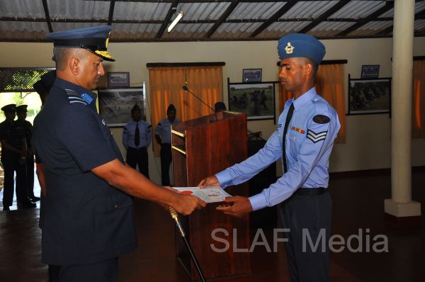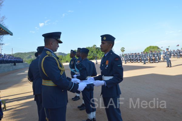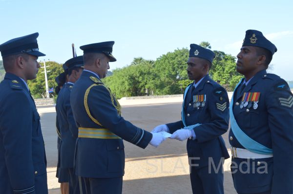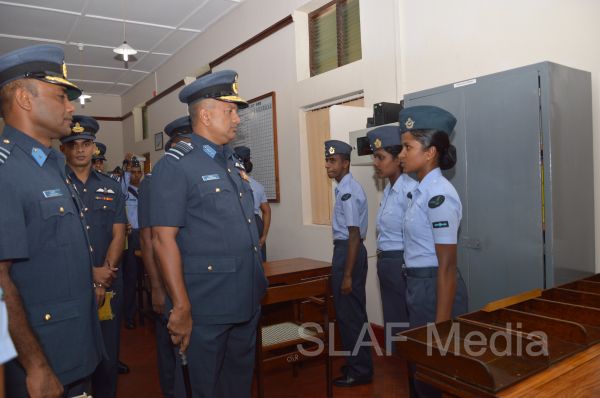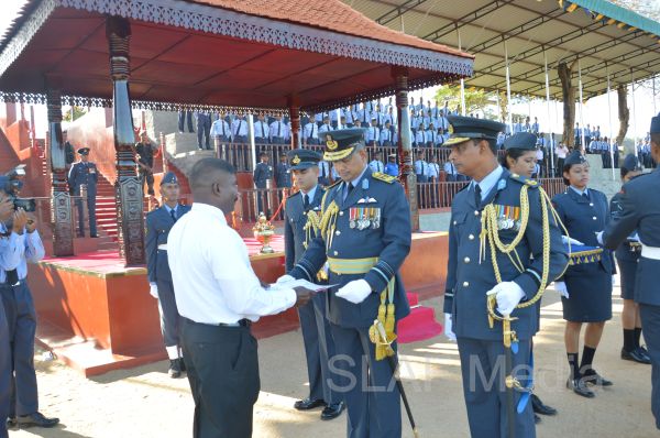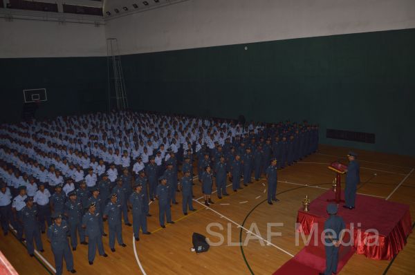 In SLAF Academy China Bay the AOC's Parade was commanded by the Commandant, Air Commodore HMSKB Kotakadeniya. The Commander awarded commendations to F/Sgt Senanayake RMR (Fire Fighter ),Sgt Dassanayake DMPS (Aero Engine Fitter) , LAC Dissanayake DMR (Ops Grd ),LAC Attanayake AMSK (Elect Works ) and Mr. MP Ariyasena (Grade I-Cook ) for their outstanding meritorious work. During the course of the inspections the Commander visited all areas of the Academy. On conclusion of the inspection, the Commander addressed all ranks of the Academy at the Gymnasium and praised the commendable job they had performed and encouraged them to set and reach even higher goals.
