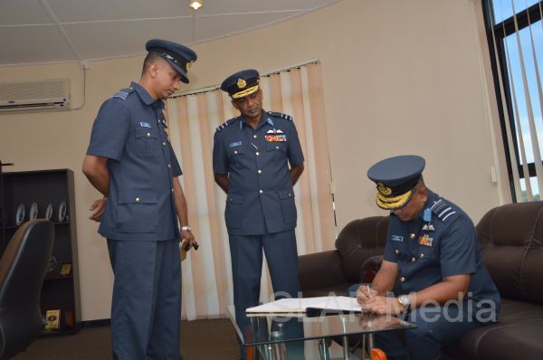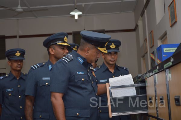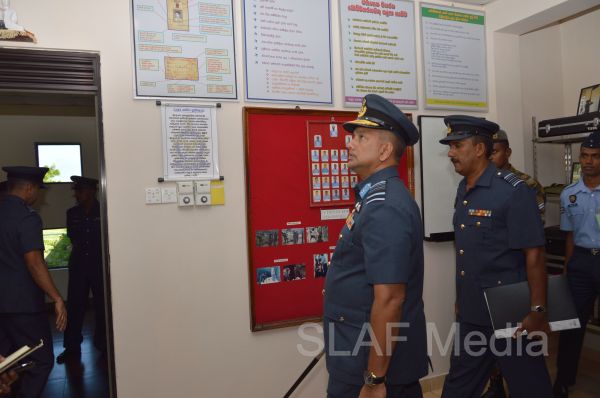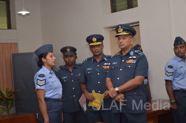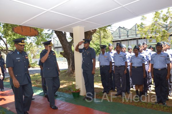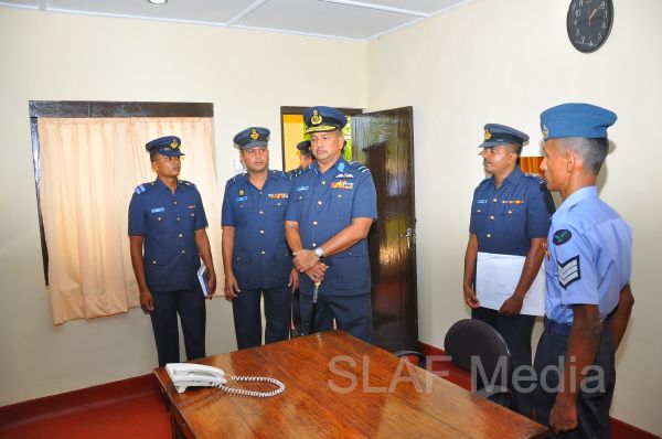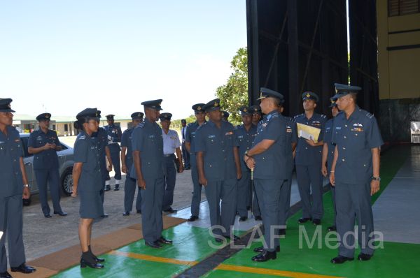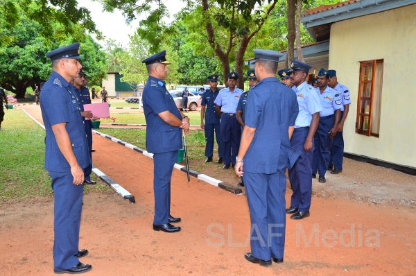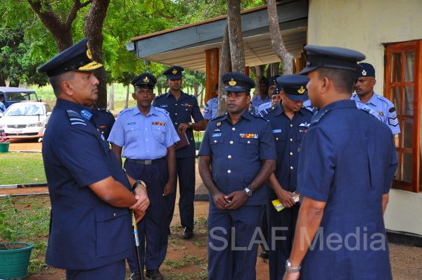 At SLAF Morawewa, Commanding Officer Wing Commander HWR Chandima received the Commander on his arrival and a Guard of Honour commanded by Flight Lieutenant BWTS Bandara was accorded to him. F/Sgt Gunarathne MV ( Carpenter ) and Cpl Dissanayake DSK ( Mason ) were commended by the Commander for exceptional dedication in the execution of duties during the past year.