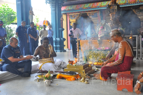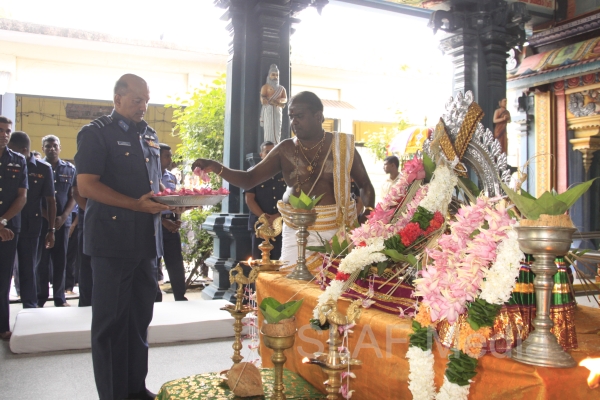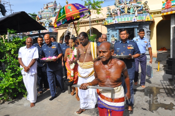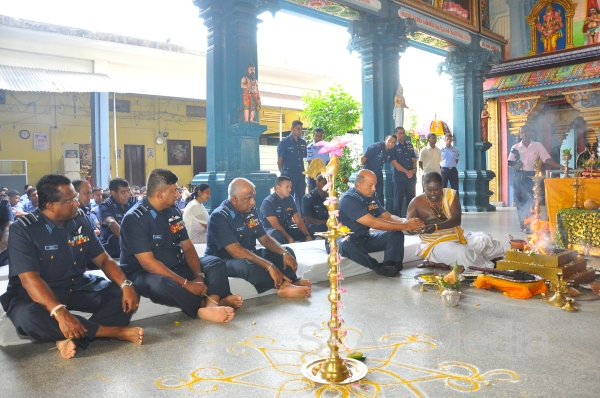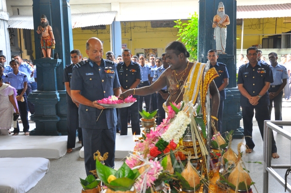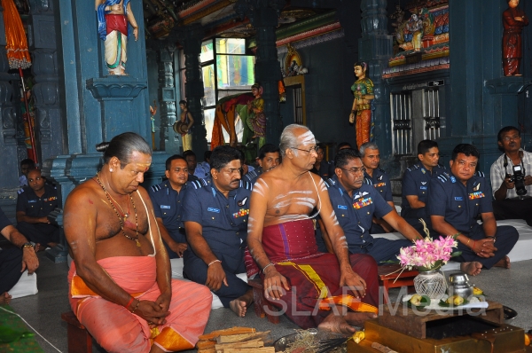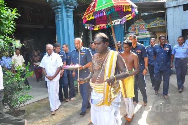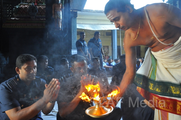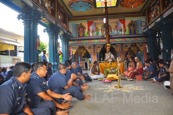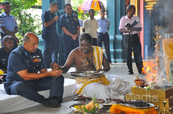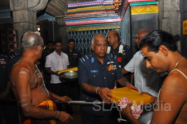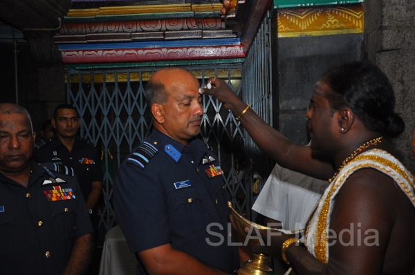 The Annual SLAF Hindu Religious Ceremony was held at the Captains Garden Sri Kailasanathar Swamy Devasthanam Colombo 10 today (17th July 13) with the key participation of the Commander of the Air Force Air Marshal Harsha Abeywickrama.
