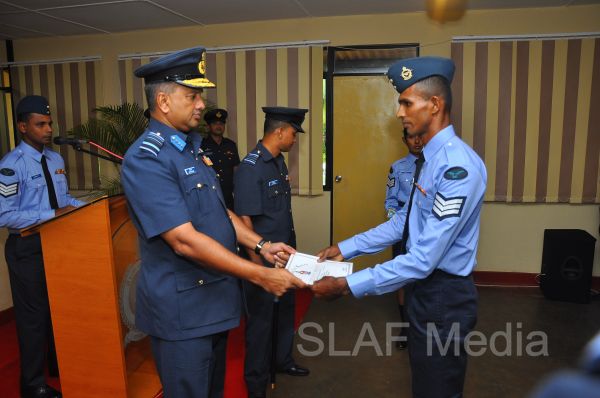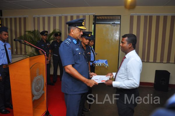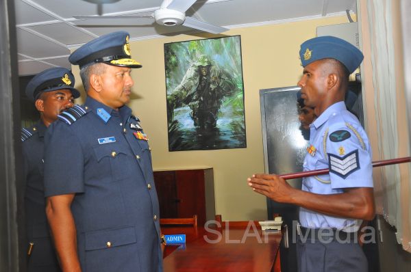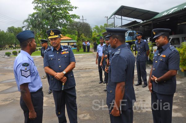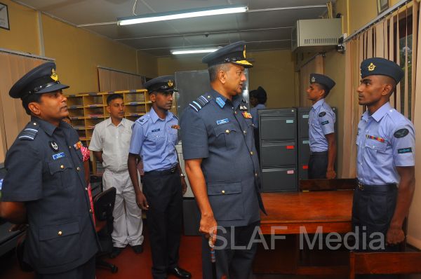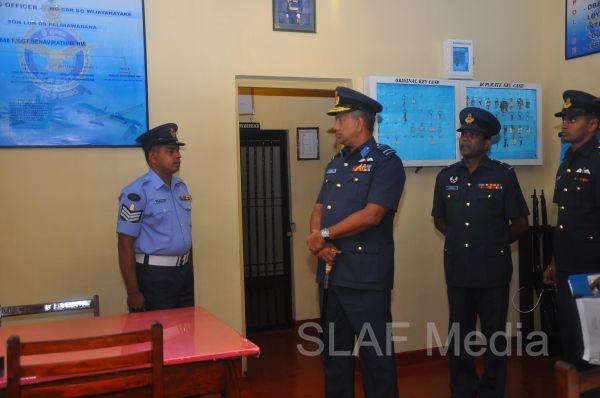 The Commander was welcomed by the Commanding Officer Wing Commander SC Wijayanayake and was accorded a Street Lining at the Unit premises. The Commander awarded Commendations to Sgt Pushpakumara BAC (PTI SP I) and Mr. PBM Saman (Labourer III) for their outstanding meritorious services rendered towards the development of the Unit.