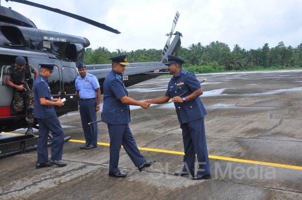 At SLAF Katukurunda, Commanding Officer Wing Commander PSN Fernando received the Commander on his arrival and was accorded a Street Lining which was commanded by Flying Officer MTL Fernando.