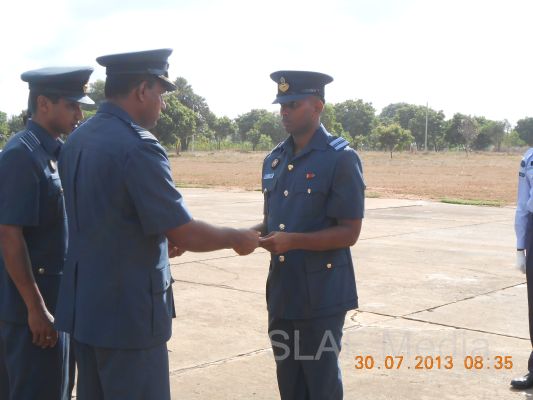The Badge Awarding Parade of No. 25 Officers No. 40 Airmen and No.16 Navy Basic EOD Course was held at SLAF Station Palavi on 30th July 2013. A total of forty personnel which comprised four SLAF, two Naval Officers and thirty Airmen, four Sailors from the Sri Lanka Navy took part in this course which was conducted for a period of over five months.