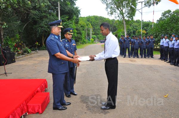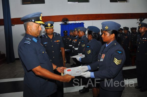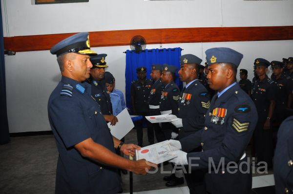 The Commander awarded commendations to F/ Sgt Jayaweera WBMG (Plumber SP I), Sgt (AW) Gunarathne BRSSK (Ops Grd SP I), Sgt Wickramarachchi WCR (Ops Grd SP I), Sgt (AW) De Mel AS (Supply SP I), Sgt Dhammika AAN (Aero Eng Fitter SP I) and Sgt De Silva HNR (Mess Supervisor I), for their exceptional dedication in the execution of duties during the past year.