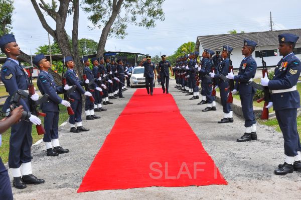 At SLAF Unit Mirigama, the Commander upon the arrival for the inspection was received by the Commanding Officer SLAF Unit Mirigama Group Captain SCK Pallawela and was afforded a street lining which was commanded by Flying Officer GGRL Pathiraja.