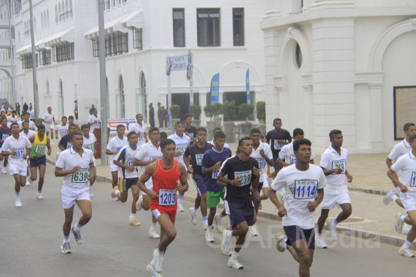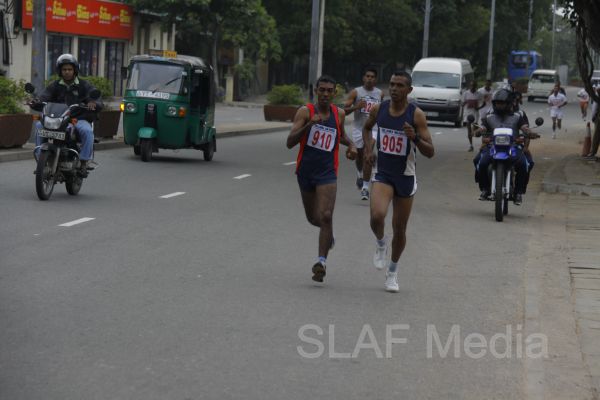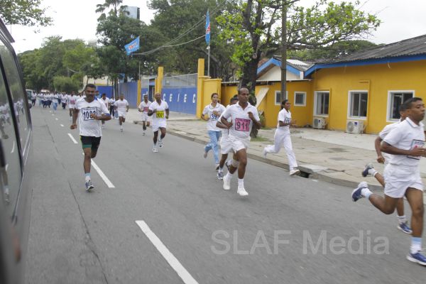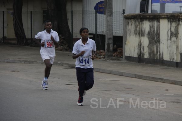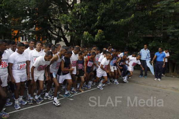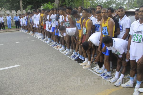 The road race for the under 35 age groups was flagged off by the Director Operations Air Vice Marshal GP Bulathsinghala opposite the Independence Square. The competitors ran 7 kms from Independence Square, Cinnamon Garden Police Station, Campus Ground, In front of Museum, Liberty Roundabout, Piththala Junction, Gangarama Mawatha, Nawaloka Junction, Slave Island Color lights, Slave Island police Station and concluded the race at SLAF Colombo Rifle Green Grounds.