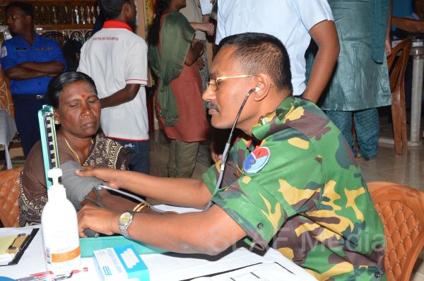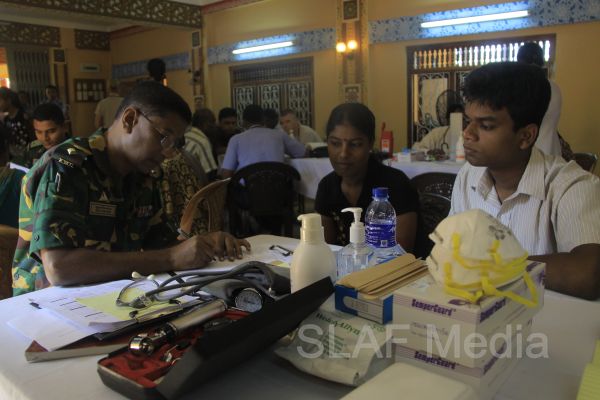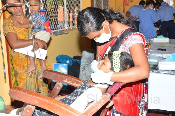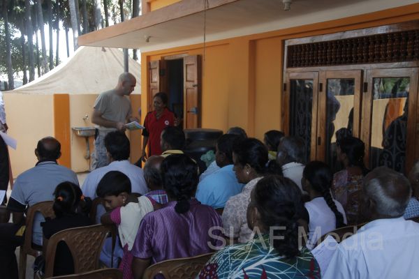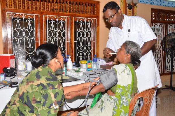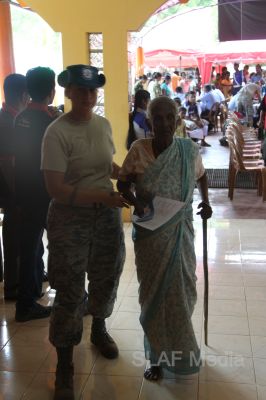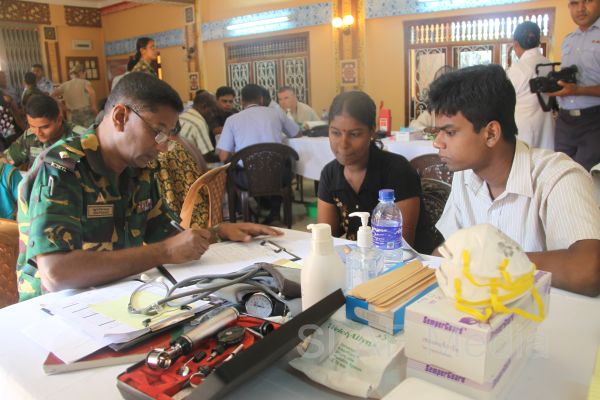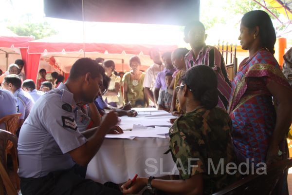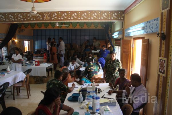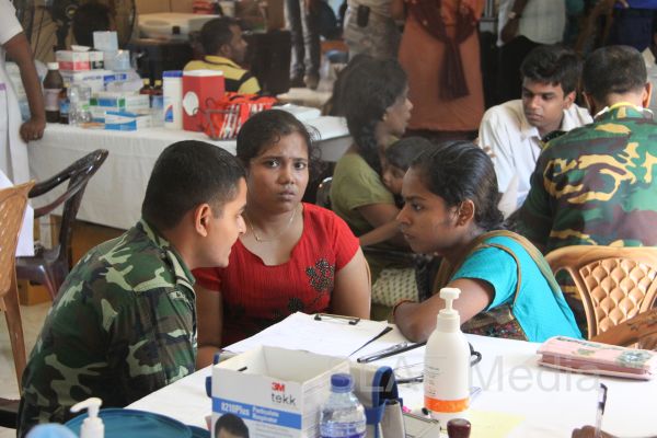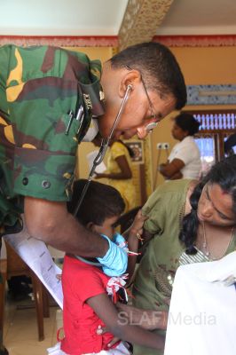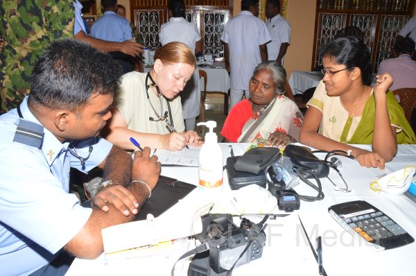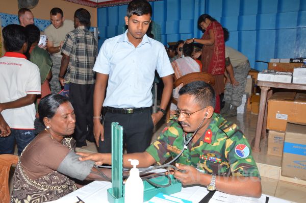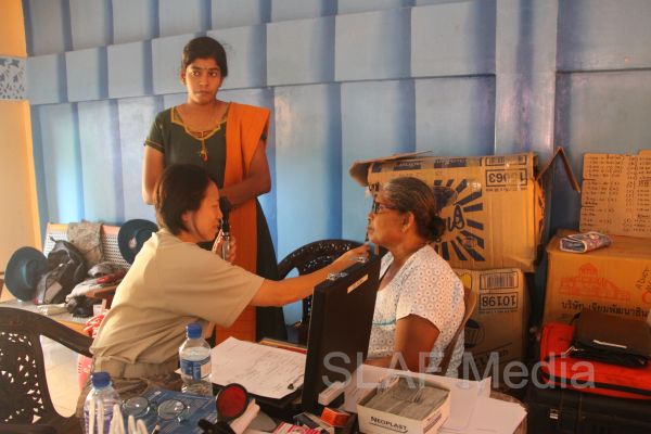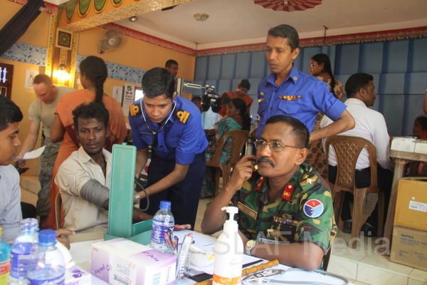 The first stage of the medical program was conducted at Thikkum Cultural Hall in Alwain North village in Jaffna on 5th and 6th August from 0830 hrs to 1500hrs with the participation of International health professionals and nursing assistance of US Pacific Air Forces comprising professionals from USA, Australia Bangladesh and Maldavian Armed Forces. The Sri Lankan Medical contingent comprised a 14 member crew including two Doctors and three consultants from the Ministry of Health Services, eight member crew including one doctor from Sri Lanka Army, eight member crew including one doctor from Sri Lank Navy, fifteen member crew including three doctors from Sri Lanka Air Force, Red Cross members and University students.