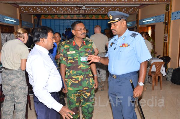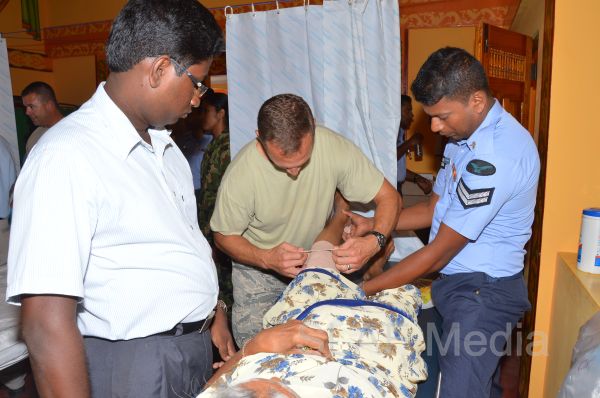 The programme mainly focuses on providing Primary Health Care, Physical Therapy, Optometry and Dentistry for civil personnel. At the entrance the incoming crowd were triaged by two doctors and directed to respective sections where the appropriate medical treatments were being provided by a team consisting of foreign and Sri Lankan doctors. The goal of this initiative was to share the knowledge and experiences of health professionals who represent various countries. A health education programme was also conducted at the assembly area for the civilians and thousand one hundred nineteen civilians were treatmented during these two days. The second stage of the medical programme will be conducted at Saivapragasa Vidyalayam in Atchelu on 8th and 9th August 2013. Meanwhile, a Medical Exchange Programme (SMEE) of aero medical evacuation with the participation of US Pacific Air Forces and the Sri Lanka Air Force personnel is also being conducted at SLAF Base Katunayake from 5th August to 9th August 2013 coinciding with the medical and renovation programmes being conducted in the Jafna Peninsula.