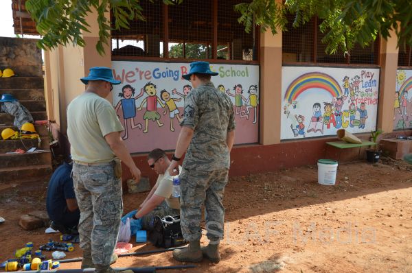 The works contingent which comprises of Seventeen works engineers from US Pacific Air Forcers, ten member crew including one works engineer from Sri Lanka Air Force, ten member crew including one Works engineer from Sri Lanka Navy and eight member crew including one works engineer from Sri Lanka Army are engaged with masonry, carpentry, plumbing, electrical works and beautification of surroundings of those schools. This exercise will provide a forum for military engineers and technicians to explore challenges, opportunities and diverse experiences related to modern engineering practices, expand knowledge, share expertise and advance skills through mutual discussion apart from the primary objective of the exercise which to enhance infrastructure facilities and livelihood development of needy people specially in the post war scenario.